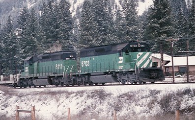 BN #6703 and 8111 a pair of SD40-2 in Missoula, MT in 1989 |