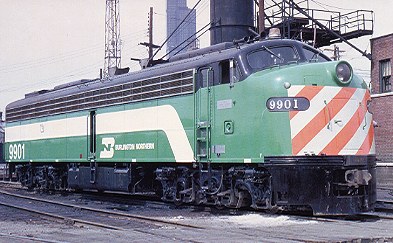 BN #9901 an E-unit passenger unit near Chicago Terminal in 1974 |