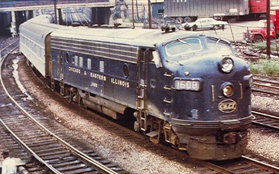 Chicago & Eastern Illinois #1608 an FP7 departing Chicago in 1966 |