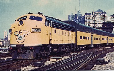 Chicago & NorthWestern #4076C an F7 rolls out of Chicago in 1967 |