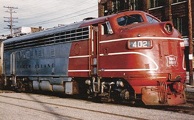 Rock Island #402 an FP7 in Peoria, 1958 |