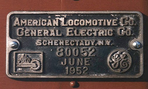 The ALCO builder's plate on the Hobo RR 1186 S-1 |